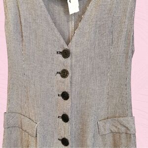 Adorable vintage 90s romper. Black and white micro houndstooth print romper with large buttons down the front. Sleeveless, deep v neck, cuffed shorts, and a waist tie in the back. So cute! Wear it in the summer as is, or in the winter with a black turtleneck and tights. Size 11/12, fits smaller, more like a medium. Excellent condition.