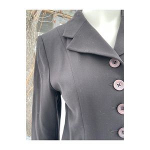 Size 6 on tag. Single Breast, 7 Button-up closure, longline cut. Pointed notched collar. Fully lined. Made in Vancouver. No stains, holes or tears. Pet and smoke-free studio.