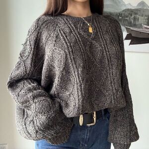 90s vintage slouchy oversized cable knit wool crewneck jumper