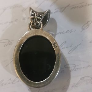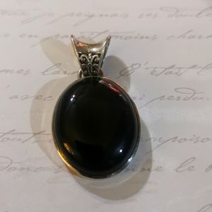 925 Silver beautiful Large black Onyx/obdisian Pendant.