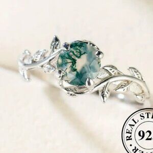 925 Moss Agate Stone and Sterling Silver ring - new in box - Size 7
