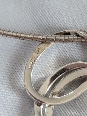 16 inches long to 18 . Very good used condition. Pendant will need a little cleaning.