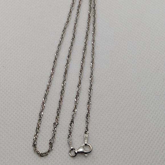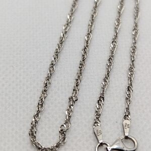 This elegant silver rope chain necklace adds a touch of sophistication to any outfit. Perfect for any occasion.