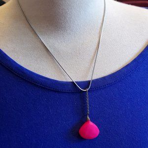 925 Silver 16" Snake Chain Pink Glass Pendant Necklace