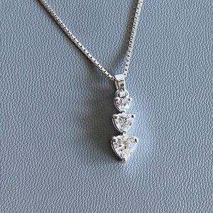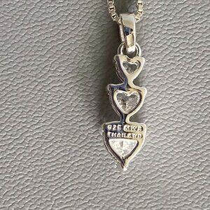 2 parts Delicate Chain Stamped 925 Silver Italy 620 AR, Paired with 925 Thailand Artisan Crystal Pendant Necklace. Chain crafted in Italy by Gimet Arezzo, Pendant crafted in Thailand Stamped by makers mark MWS possibly Mark Wasserman an American designer but made in Thailand. Both pendant & chain are superior quality 925 Sterling silver. Triple heart small, med & larger dazzling crystals in prong settings. Chain Length: 18" + 2" extender / Pendant: 3/4" Long. Has never been worn, but no original box.
