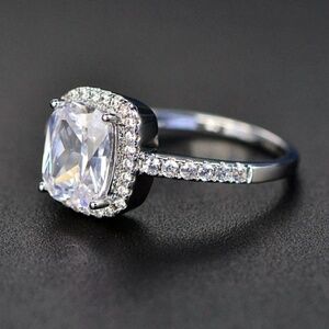 π Silver Plate Ring Fashion Jewelry Synthetic Cubic Zircon large rectangular centre stone surrounded by sparkling diamond-like side stones