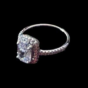 π Silver Plate Ring Fashion Jewelry Synthetic Cubic Zircon large rectangular centre stone surrounded by sparkling diamond-like side stones