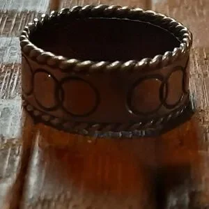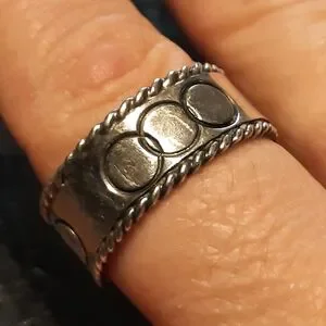 This elegant 925 silver band ring features a unique design with intricate detailing. Perfect for adding a touch of sophistication to any outfit.not new good condition, size 8