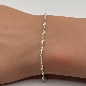Very pretty and dainty 925 Silver rope chain bracelet. This simple bracelet can be dressed up or dressed down to match any outfit. Bracelet is 7 1/2 inches long.