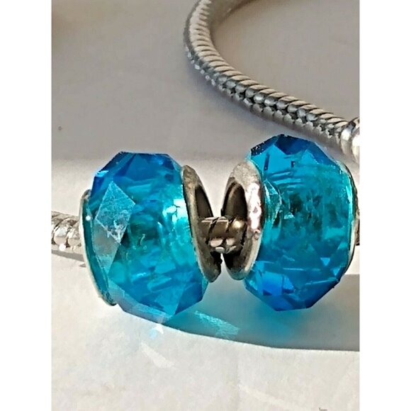 925 Sterling Faceted Crystal Beads European Charm Bracelet - Capri Blue Lot of 8