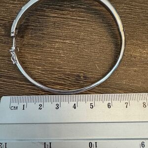 925 Sterling Silver Bangle Bracelet - Heart Clasp with Diamond Chips -Size M