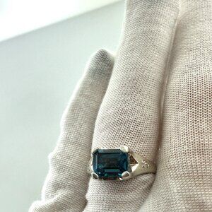 925 Sterling Silver Blue Topaz Ring with Crystal Accents - Size 6.75