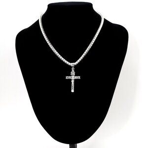 Sterling Silver Crucifix Pendant on 3.8mm Curb Chain,