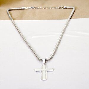925 Sterling Silver Cross Necklace, Large Cross Pendant with Snake Chain ITALY