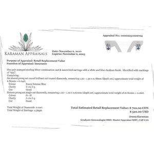 Six shared prong set diamonds 0.04ct (Fancy intense blue, I-1 to I-3, Good)