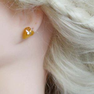 Designed to last a lifetime and made of sterling silver, these original butterfly earrings studs impeccably combines the delicacy of the butterflies with the beauty of the natural amber. Each piece is unique as the silhouette and the color of earrings varies with the form of the natural amber.