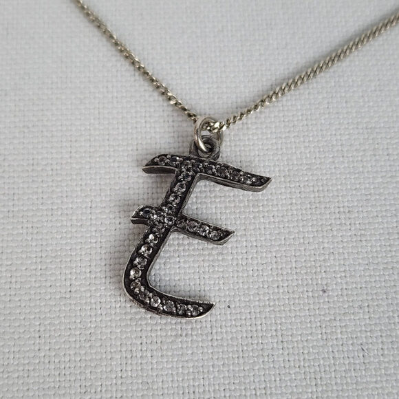 925 Sterling Silver Initial E Crystal Pendant Necklace