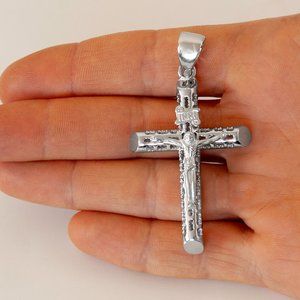 925 Sterling Silver Large Thick Crucifix Cross Pendant for Large Chains