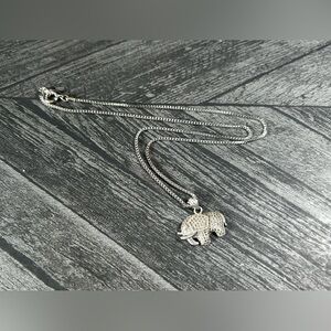 925 Sterling Silver Marcasite Asian Elephant Pendant and Chain