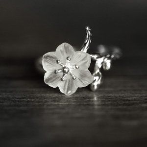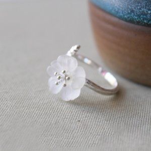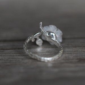 925 Sterling Silver Natural White Quartz Open Ring, a super dainty piece that captures the delicacy of the flower to its maximum.