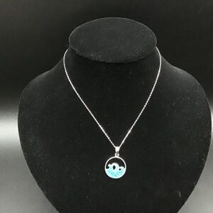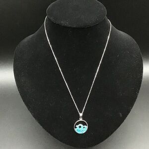 - 925 Sterling Silver Necklace with Round Enameled medallion and Lobster C…