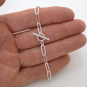 925 Sterling Silver Paperclip Toggle Clasp Bracelet 7 inch, Dainty Bracelet