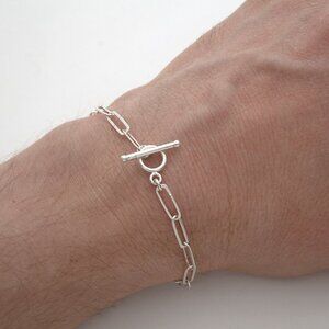 This Dainty, High Quality Solid 925 Sterling Silver Paperclip Toggle Clasp Bracelet can be worn alone or