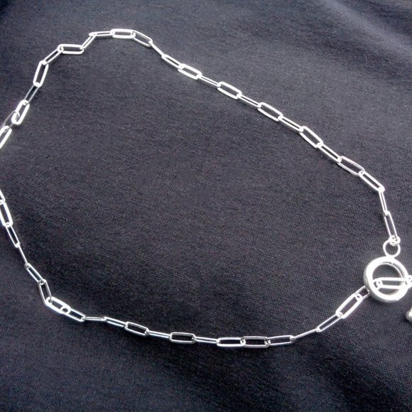 925 Sterling Silver Paperclip Toggle Clasp Necklace 16 inch Paperclip Chain