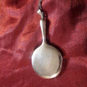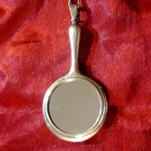 925 Sterling Silver Pendant Vintage 90s Hand Mirror on Silvertone Chain Extender