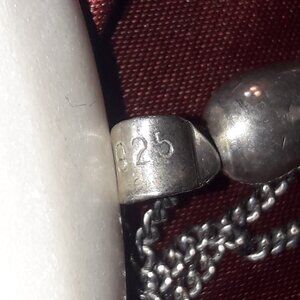 Crafted from 925 sterling silver, this pendant is made in the form of a miniature Victorian hand mirror. The link that attaches the mirror to the chain is marked "925".