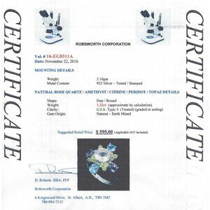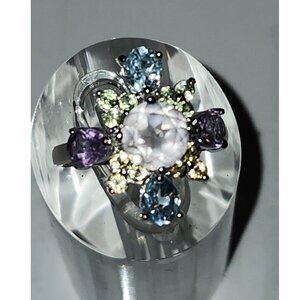 .925 Sterling Silver Rose Quartz/Amethyst/Citrine/Peridot/Topaz Ring Sz 7 $595