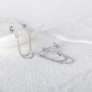 925 Sterling Silver Stud Double Piercing Platinum Earrings