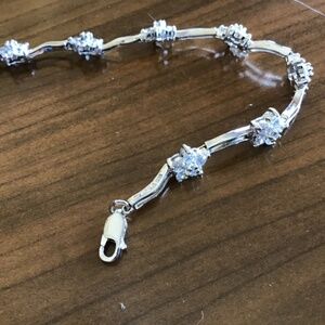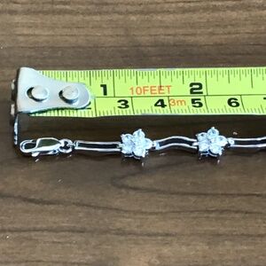 925 Sterling Silver and White Cubic Zirconia Long Wavy Link Bracelet 7.5"