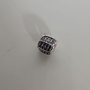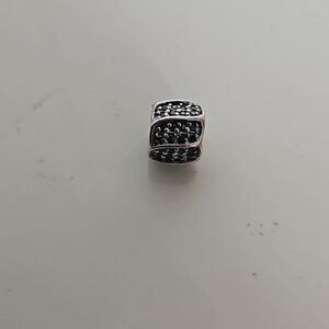 925 Sterling Silver Sparkling Black Stone Charm Silver