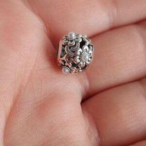925 Sterling Silver Vintage Pearl Flowers Charm