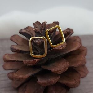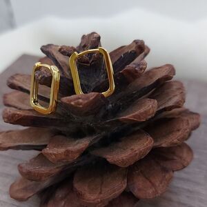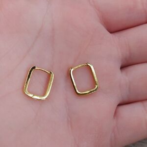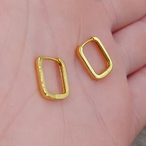 925 Sterling Silver Rectangle Gold Huggies Earrings