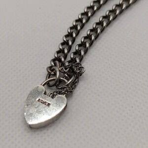 Vintage Victorian styled heart lock bracelet with security chain on a curb bracelet. lock opens and closes as it should. approximately 6.5" long