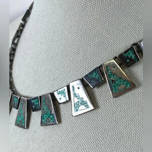 925 Vintage silver - Aztec style necklace with inlaid turquoise coloured stone