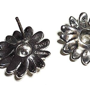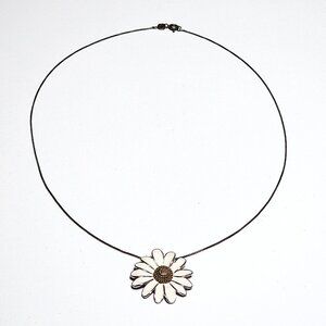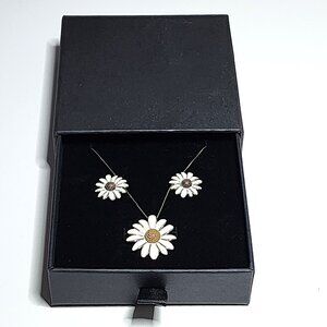 Matching set of 925 silver & white enamel daisy necklace & earrings for pierced ears
