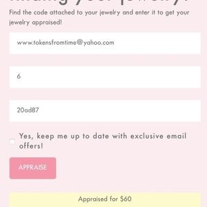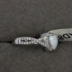 Never worn Charmed Aroma ring. Heart shape in faux pearl with clear stone surround. Appraised at $60. Size is ring size 6.