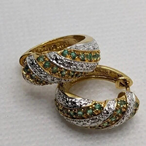 Stunning exquisite natural diamond and emerald looking stone earrings this is a perfect example of where elegance finds Its extraordinary artistry. not all diamonds some are metal but there are natural diamonds.