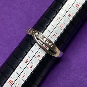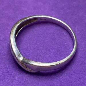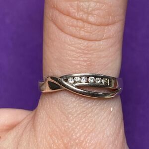 Pretty CZ bypass ring in sterling silver. Stones are all intact and sparkly! Some minor wear on the band.