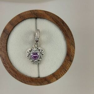 tags: 925, S925, Sterling Silver, fits Pandora bracelet, gift, charm, vintage, purple, heart, love