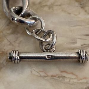 In excellent preowned condition beautiful sterling silver chunky oval link bracelet with elegant toggle closure.