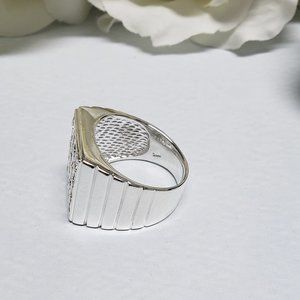 935 Silver Men Vintage Jewelry Wedding Ring Round Cubic Zircon