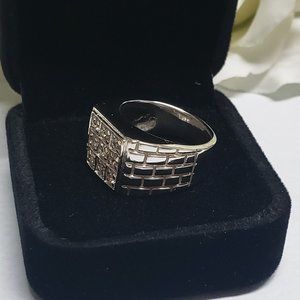 935 Silver Men Vintage Jewelry Wedding Ring Round Cubic Zircon