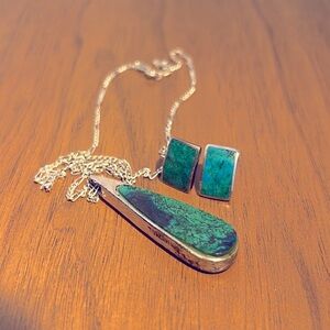 935 Silver Vintage Israel Greenblue Eilat Gemstone set pendant, earrings