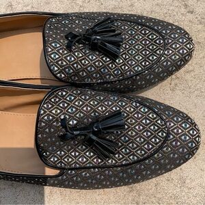 [9.5] J.Crew Black & White, Pink & Blue Diamond Print Almond Toe Tassle Loafers