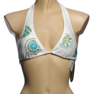 Top is a classic triange string bikini top, is lined and has removable pads.