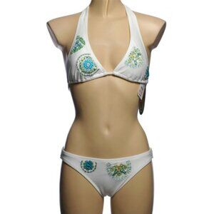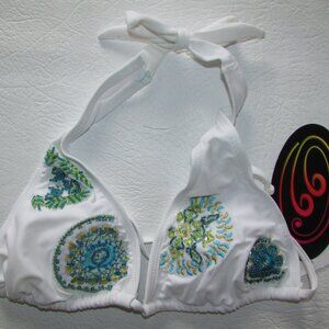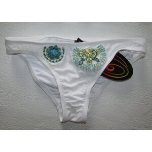 Bottoms are slightly cheeky fit (not a full bottom), fully lined on the front and back and are also accented with the beautiful embroidery and beadwork on front.
